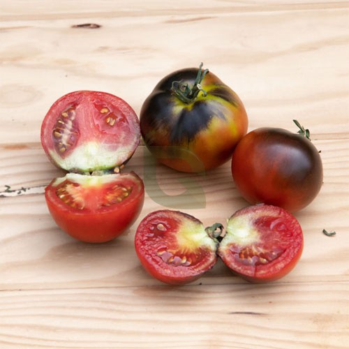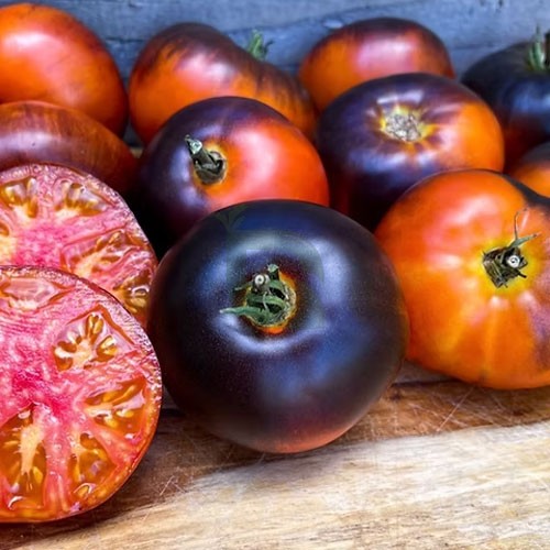 The Black Shade Tomato Seeds produce a stunning exotic heirloom tomato known for its deep red fruits with dramatic black shading on the shoulders and skin. As the tomatoes ripen, rich anthocyanin pigments create a smoky black tone over a juicy red base, giving every fruit a bold, premium appearance. When sliced, the tomatoes reveal seed-rich, juicy flesh with balanced sweetness and gentle acidity, making them perfect for fresh eating and gourmet cooking.