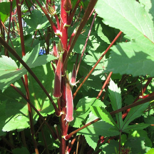 Type of Seed: Heirloom Exotic Red Okra / Ladies Finger (Candle Fire Variety)