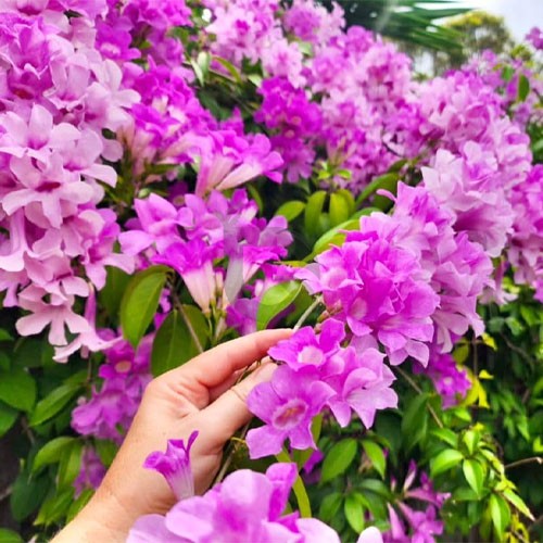 Garlic Vine thrives in most parts of India. It grows actively during the monsoon and post-monsoon seasons, and blooms heavily in early winter. In warmer states, it may produce flowers multiple times a year. This vine enjoys moderate humidity and can grow well in well-drained garden beds or large pots.