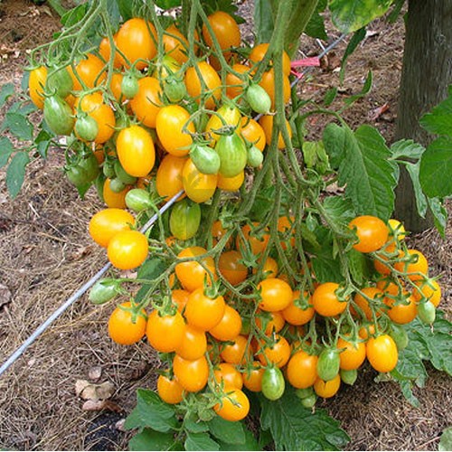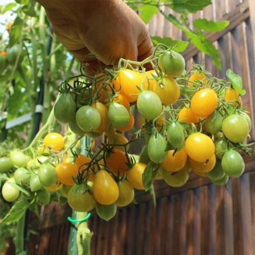 Ildi Cherry Grape Yellow Tomato Seeds are a delightfully high-yielding heirloom tomato variety known for producing dozens of grape-shaped golden fruits per cluster. With up to 75 tomatoes in a single truss, these sweet yellow tomatoes are both stunning and flavorful. Their firm texture, mild sweetness with a hint of tang, and excellent shelf life make them perfect for salads, snacking, and decorative plating.