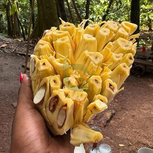 This Brazilian Giant Jackfruit tree is an outstanding tropical performer. It is budded for early fruiting, meaning faster results than seed-grown trees. It produces enormous fruits that weigh up to 40 kg each, filled with delicious, golden yellow, sweet bulbs. The tree has a strong canopy, acts as a shade tree, and is resilient against climate stress. Its large, leathery leaves and sweet scent attract bees and birds, enhancing biodiversity. This plant is a one-time investment with lifetime rewards!