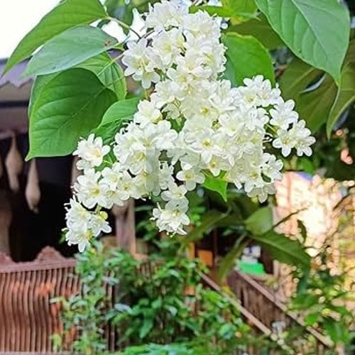 Manimulla (Porana Paniculata) is a fast-growing, low-maintenance creeper known for its striking appearance and lush white blooms. Its flowering clusters create a cascading effect that enhances the vertical aesthetics of your garden. It also acts as a natural privacy screen. Additionally, this plant attracts butterflies, making it a pollinator-friendly addition. It’s drought-tolerant once established and thrives in the Indian climate with very little care.