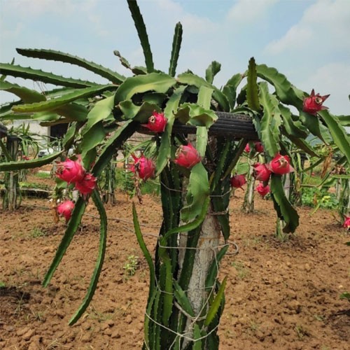 The Red Dragon Fruit Plant grows best in India’s warm, tropical, and semi-arid regions. It can be planted throughout the year, but the monsoon season (June – September) ensures fast root development. With proper care, the plant begins fruiting within 1–2 years, producing large red-skinned fruits with deep red flesh that are delicious, refreshing, and highly nutritious.